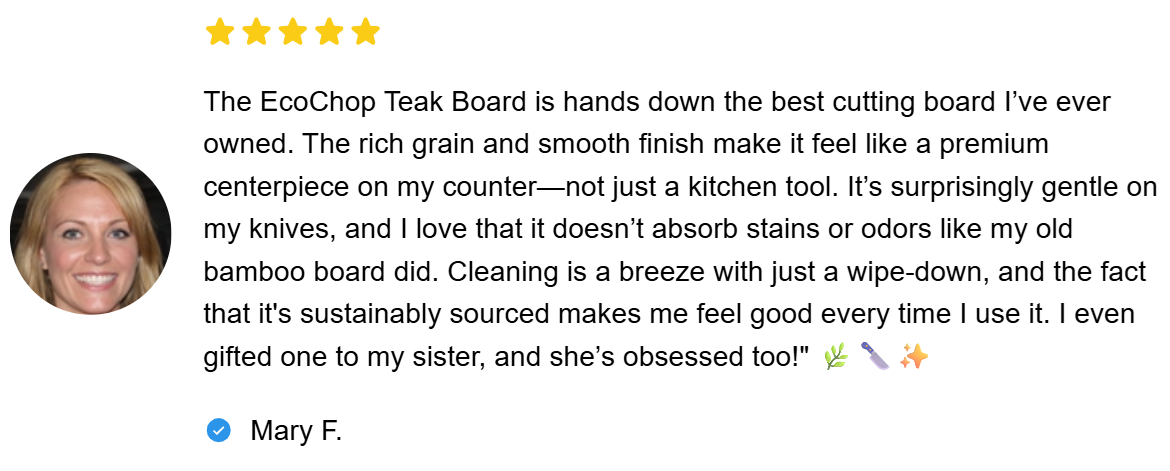 Unlike ordinary boards, EcoChop™ blends timeless teak elegance with functional durability. It’s easy to clean, gentle on knives, and doubles as a serving platter—bringing purpose and style to your kitchen routine.